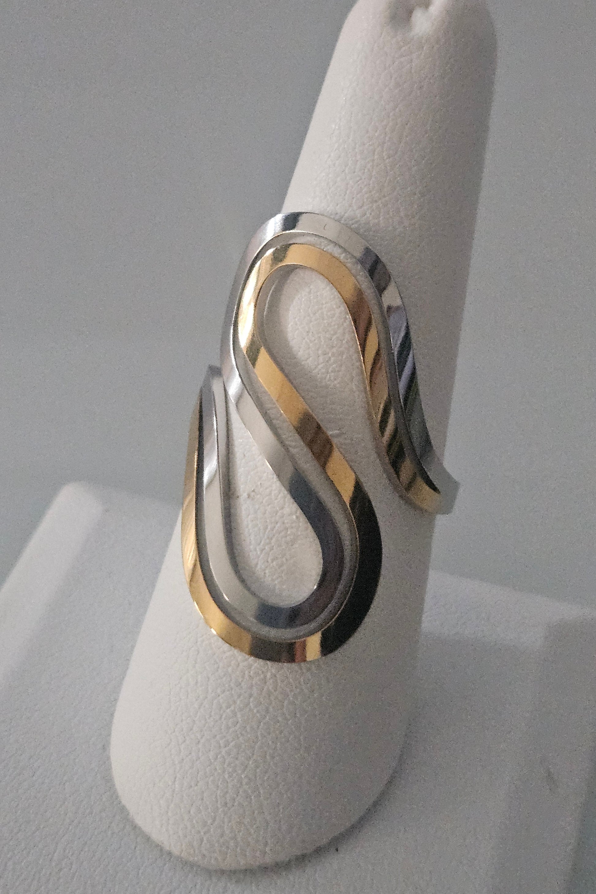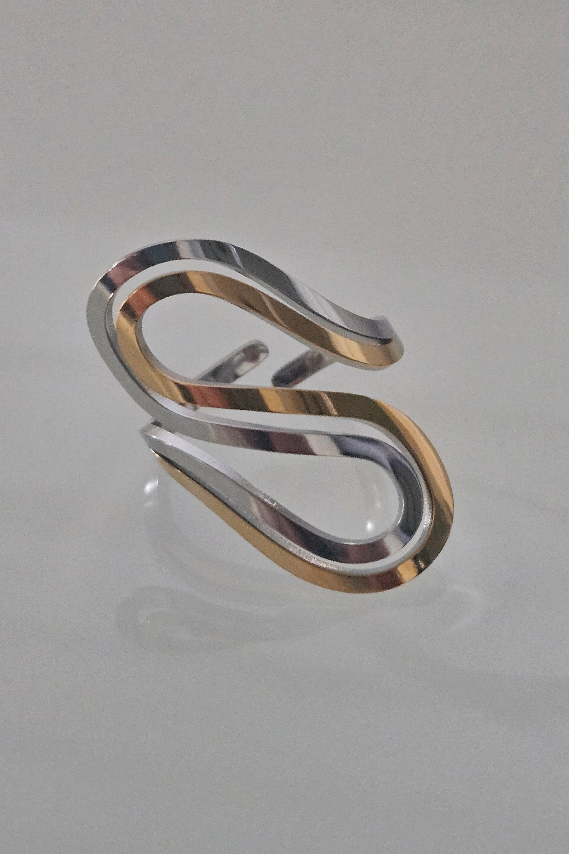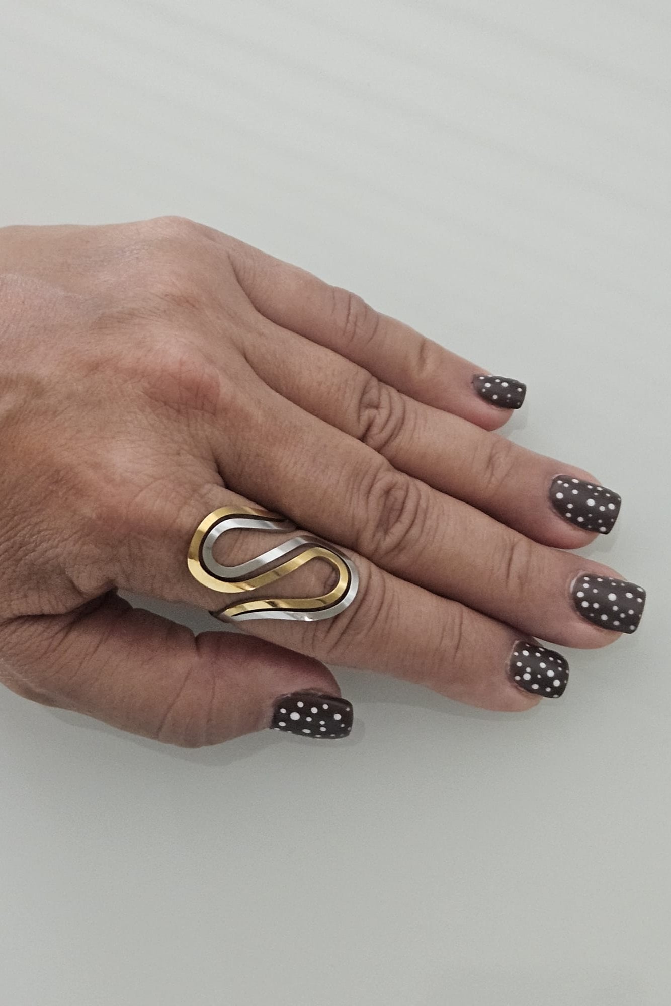 SORTIJA 2 TONOS, PLATEADA Y DORADA, SIZE 8 AJUSTABLE, STAINLESS STEEL.