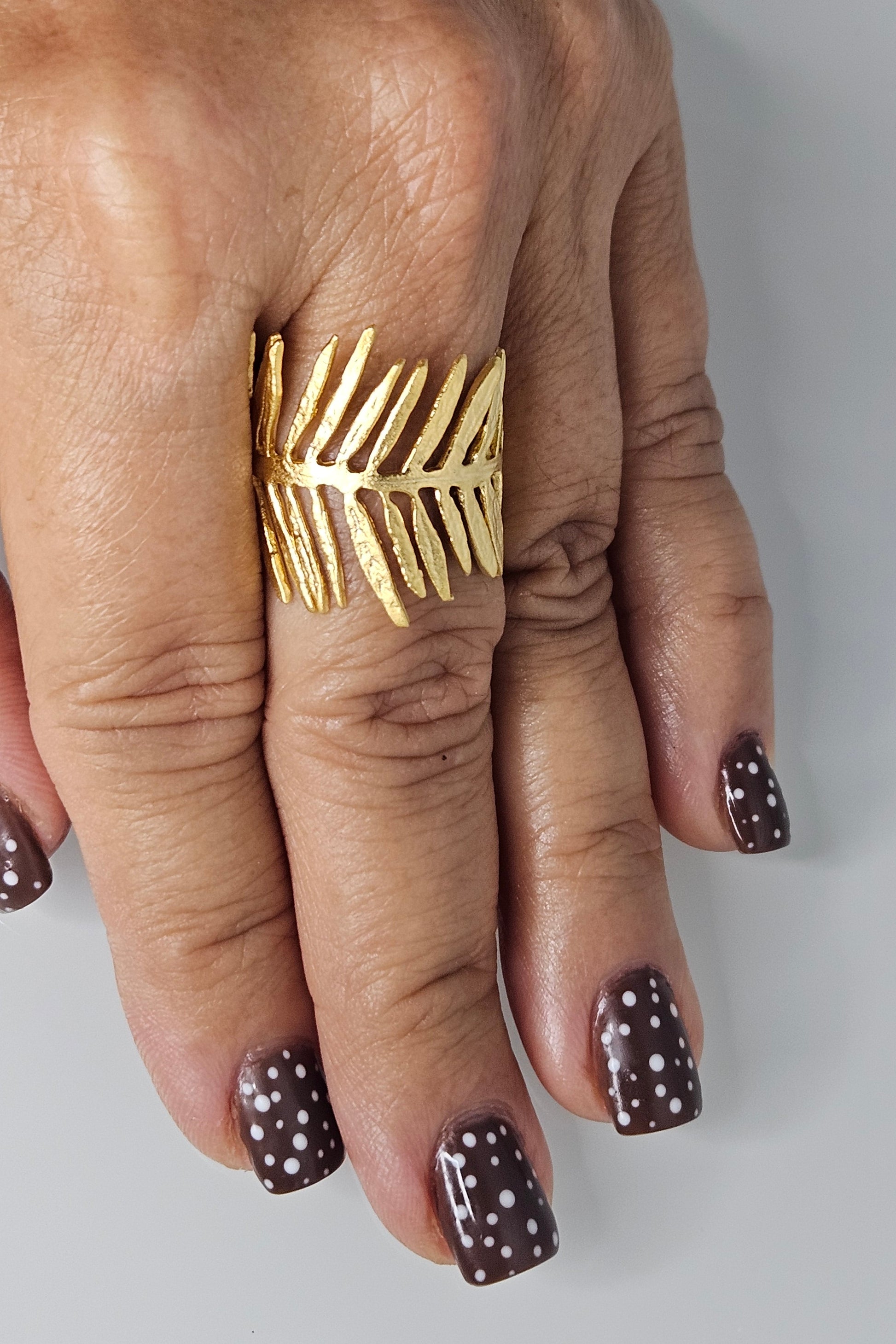 SORTIJA TURCA DORADA DE HOJA, TIPO ARO, AJUSTABLE