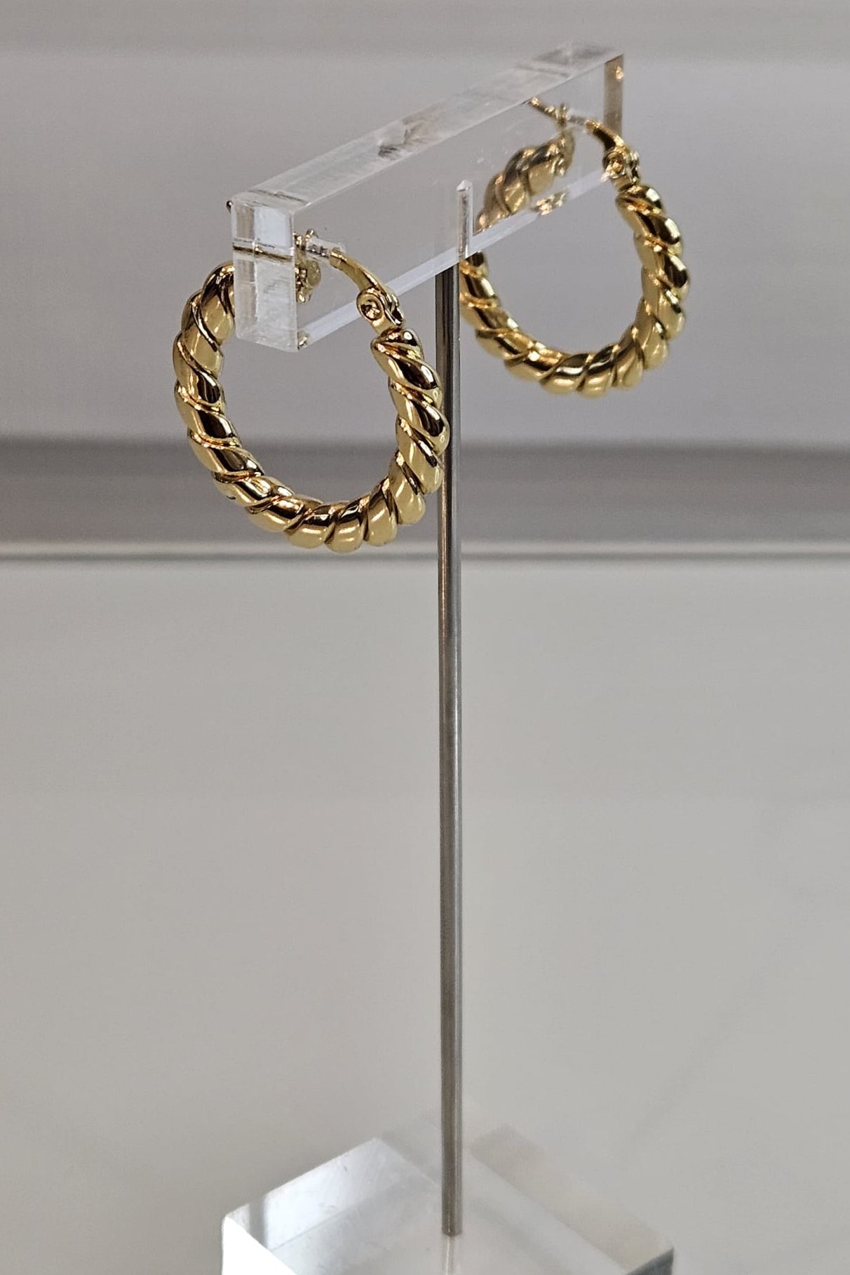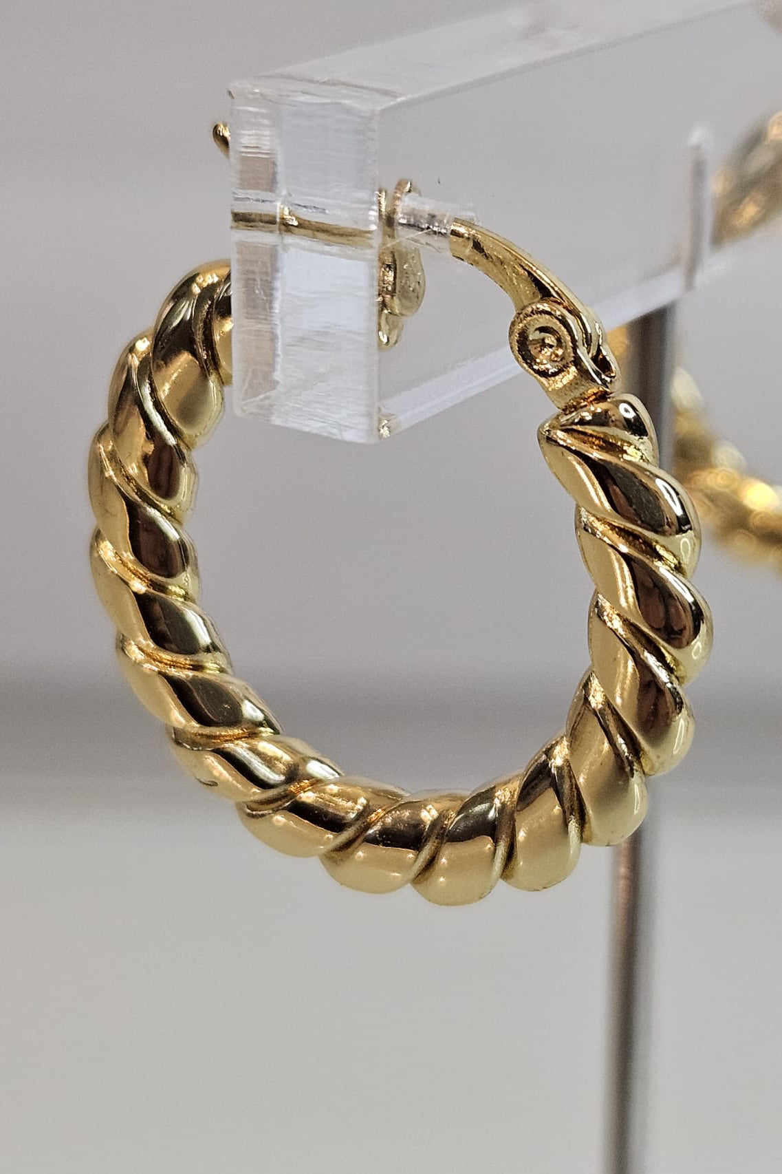 COLLAR PLATEADA CON PENDANT Y PANTALLAS DORADAS. DOS TONOS, CADENA DE ESLABONES GRANDES AJUSTABLE, PENDANT OVALADO, PANTALLAS "HOOPS" DORADAS EN COMBINACIÓN CON EL PENDANT, STAINLESS STEEL.
