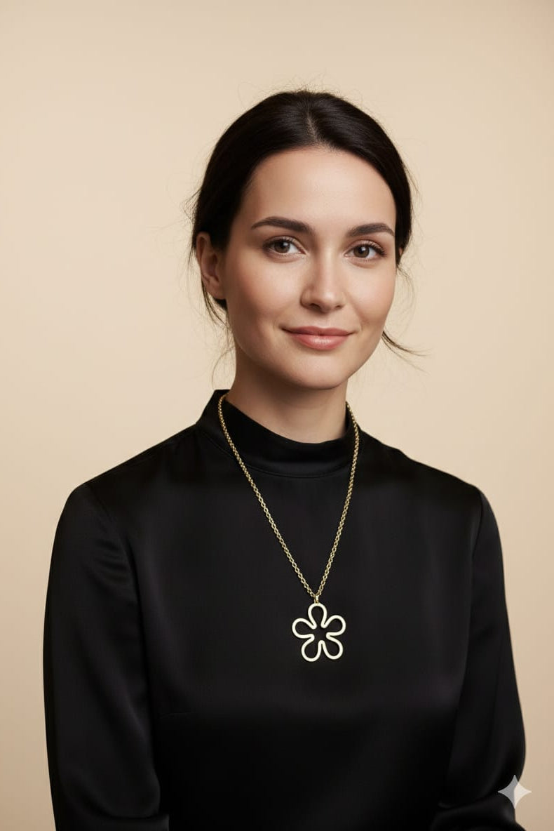 COLLAR CADENA LARGA PLATEADA Y/O DORADO CON PENDANT DE FLOR ABIERTA, STAINLESS STEEL.
