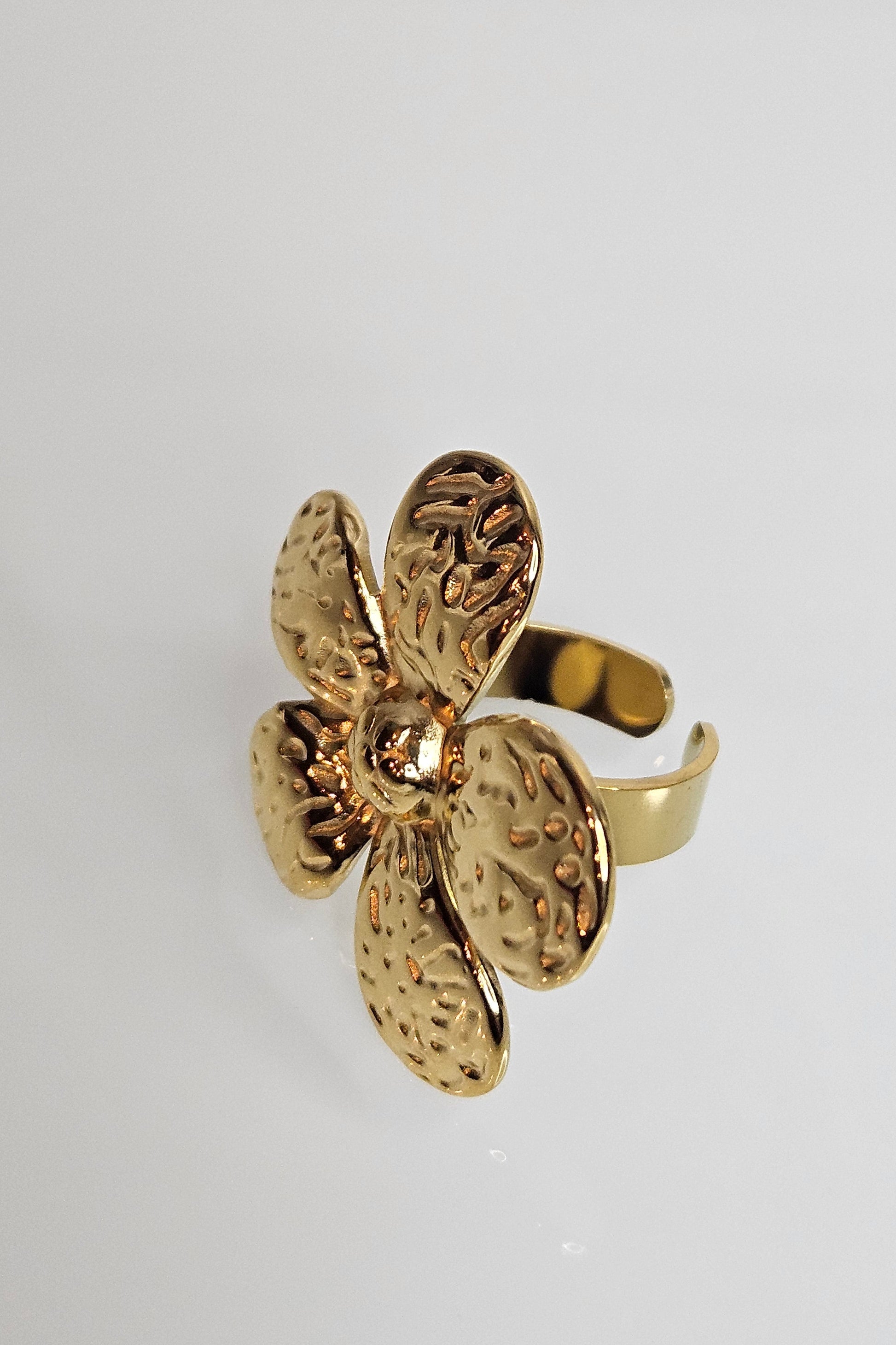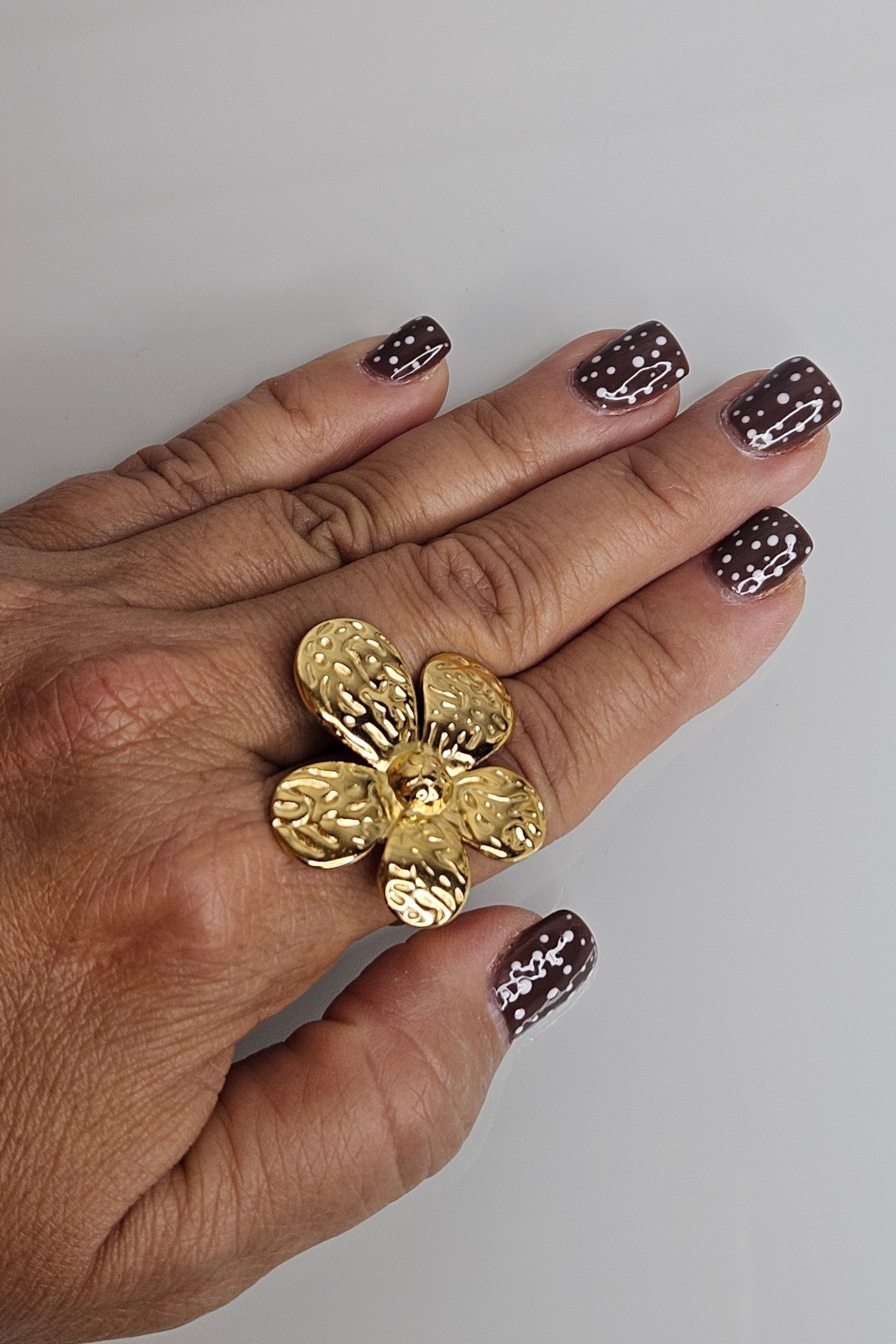 SET DORADO DE CADENA Y SORTIJA DE FLOR CON PANTALLAS