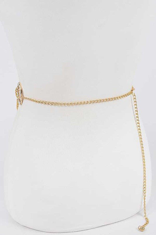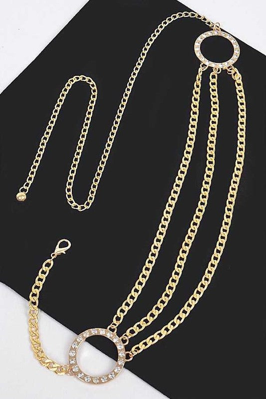 CORREA DORADA DE CADENA Y ARO CON RHINESTONES.