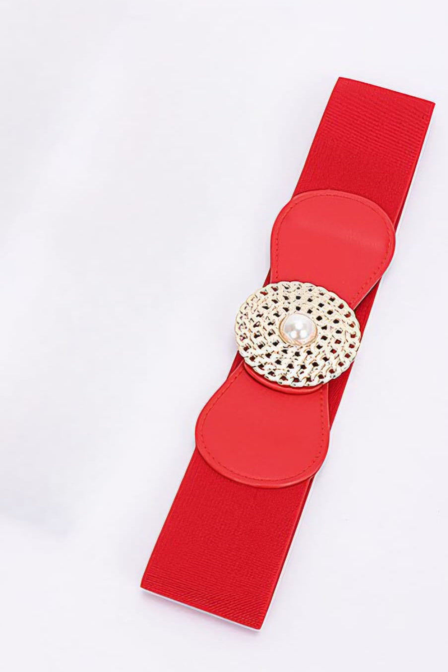 CORREA ROJA CON HEBILLA DORADA CON PERLA