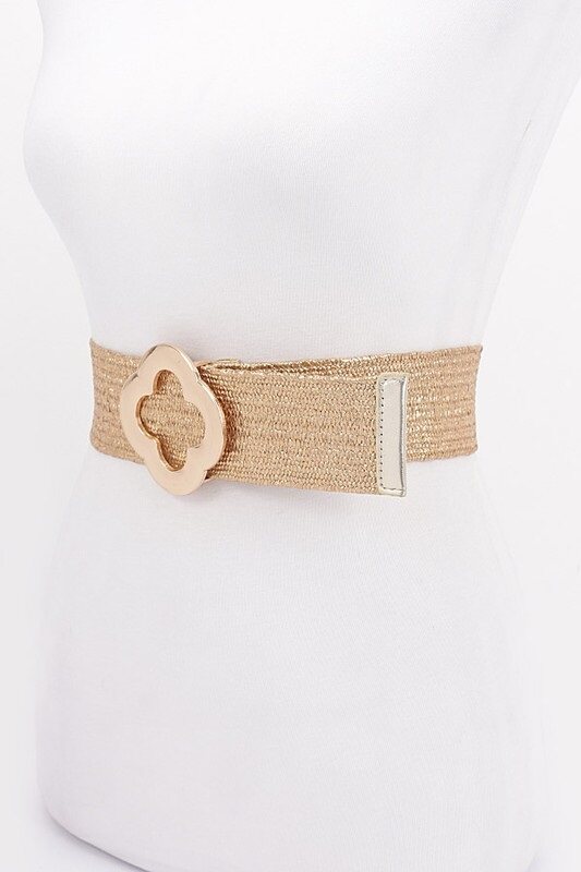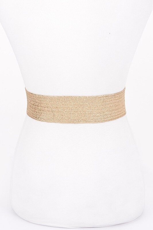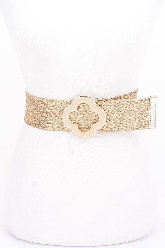 CINTURÓN ELÁSTICO DORADO CON LUJOSA HEBILLA METÁLICA, ESTE ACCESORIO REALZA CUALQUIER ATUENDO, CONVIRTIÉNDOLO EN UNA PRENDA IMPRESCINDIBLE EN TU ARMARIO.