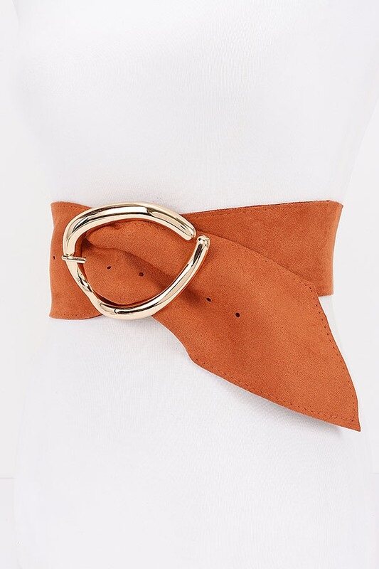ESTE CINTURÓN ES UN ACCESORIO ELEGANTE Y VERSÁTIL. SU SUAVE SUEDE SINTÉTICO Y SU GRAN Y LLAMATIVA HEBILLA METÁLICA AÑADEN UN TOQUE DE SOFISTICACIÓN Y MODERNIDAD A CUALQUIER LOOK. IDEAL PARA LOOKS CASUALES Y ELEGANTES.