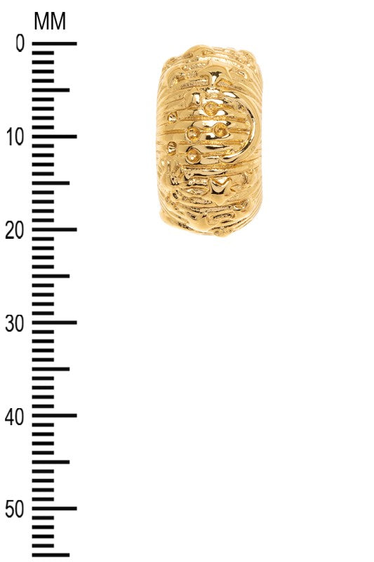 PANTALLAS DORADAS TEXTURIZADAS. PENDIENTES DE ACERO INOXIDABLE CON BAÑO DE ORO DE 14 QUILATES, CIERRE DE PRESIÓN Y 22 MM DE LONGITUD.