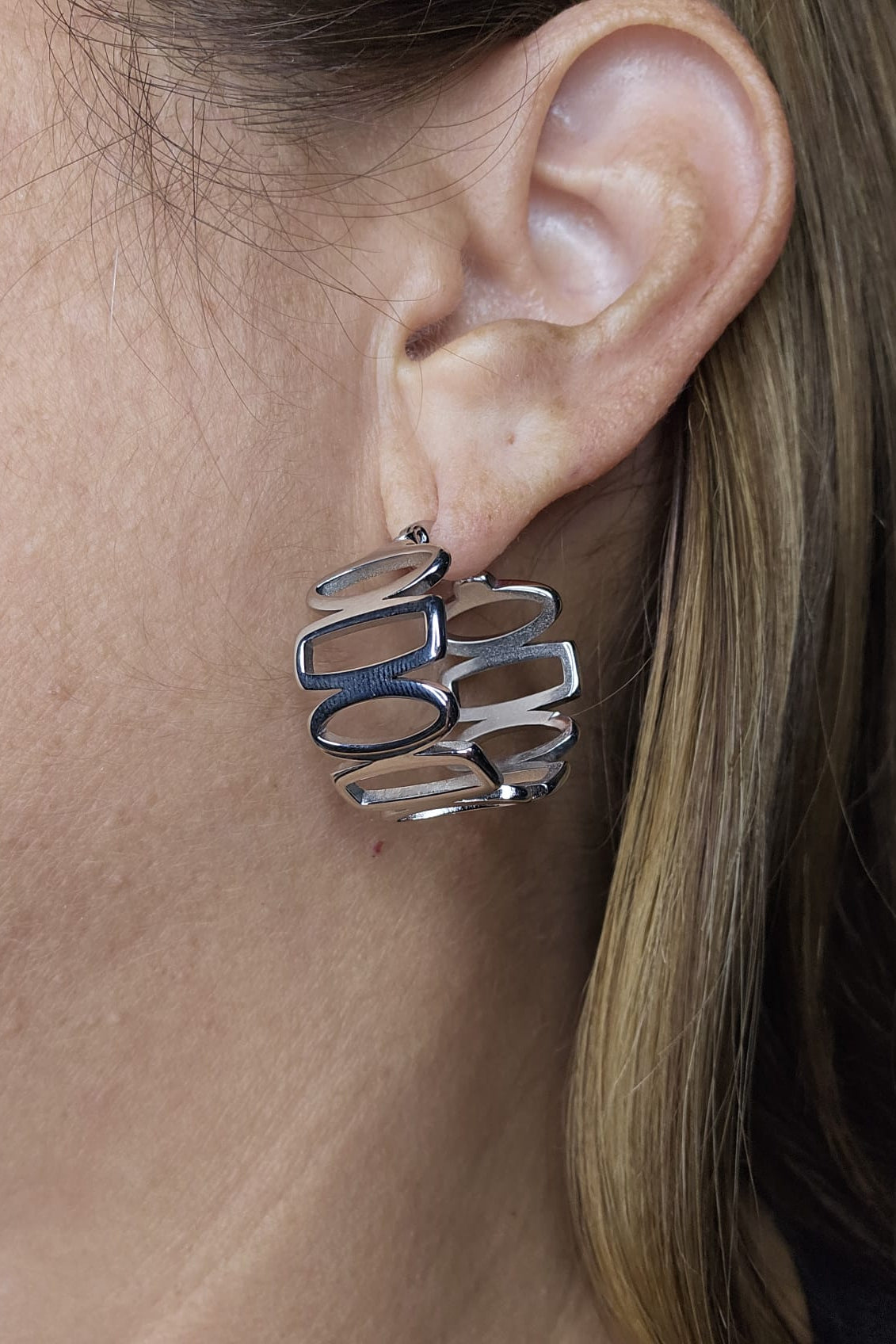PANTALLAS "HOOPS" PLATEADAS FORMADAS POR RECTÁNGULOS Y ÓVALOS.