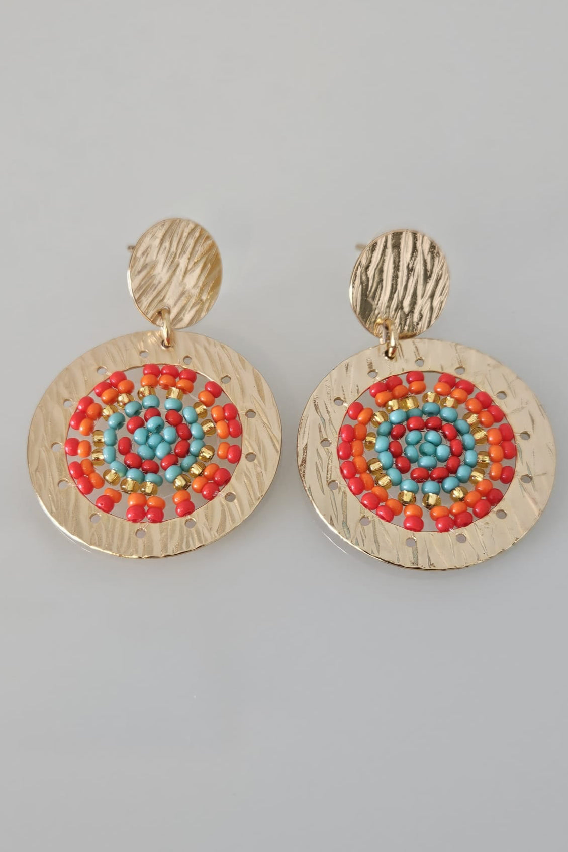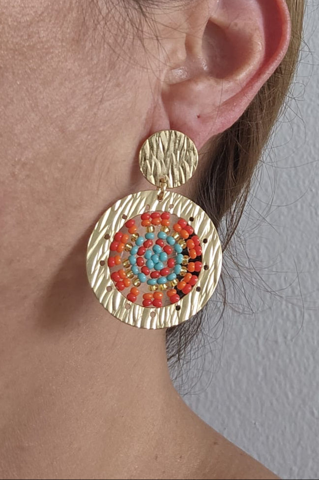 PANTALLAS REDONDAS DORADAS CON ROJO, ANARANJADO Y TURQUESA