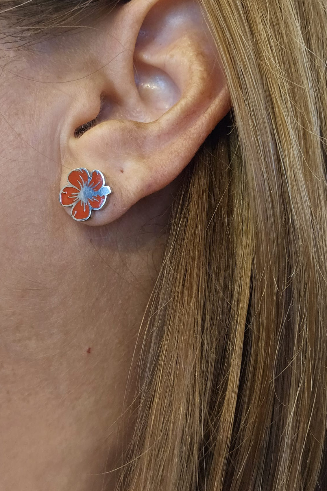 SET DE CADENA PLATEADA CON AMAPOLA ROJA, PANTALLAS Y SORTIJA