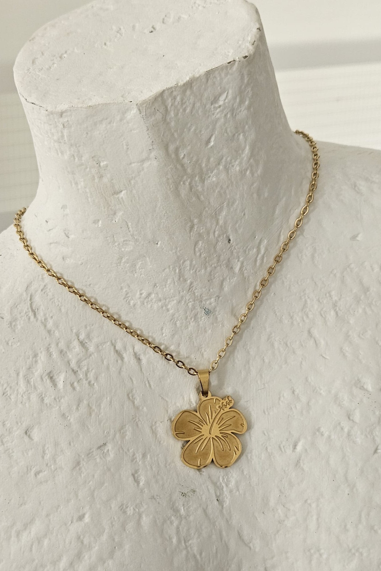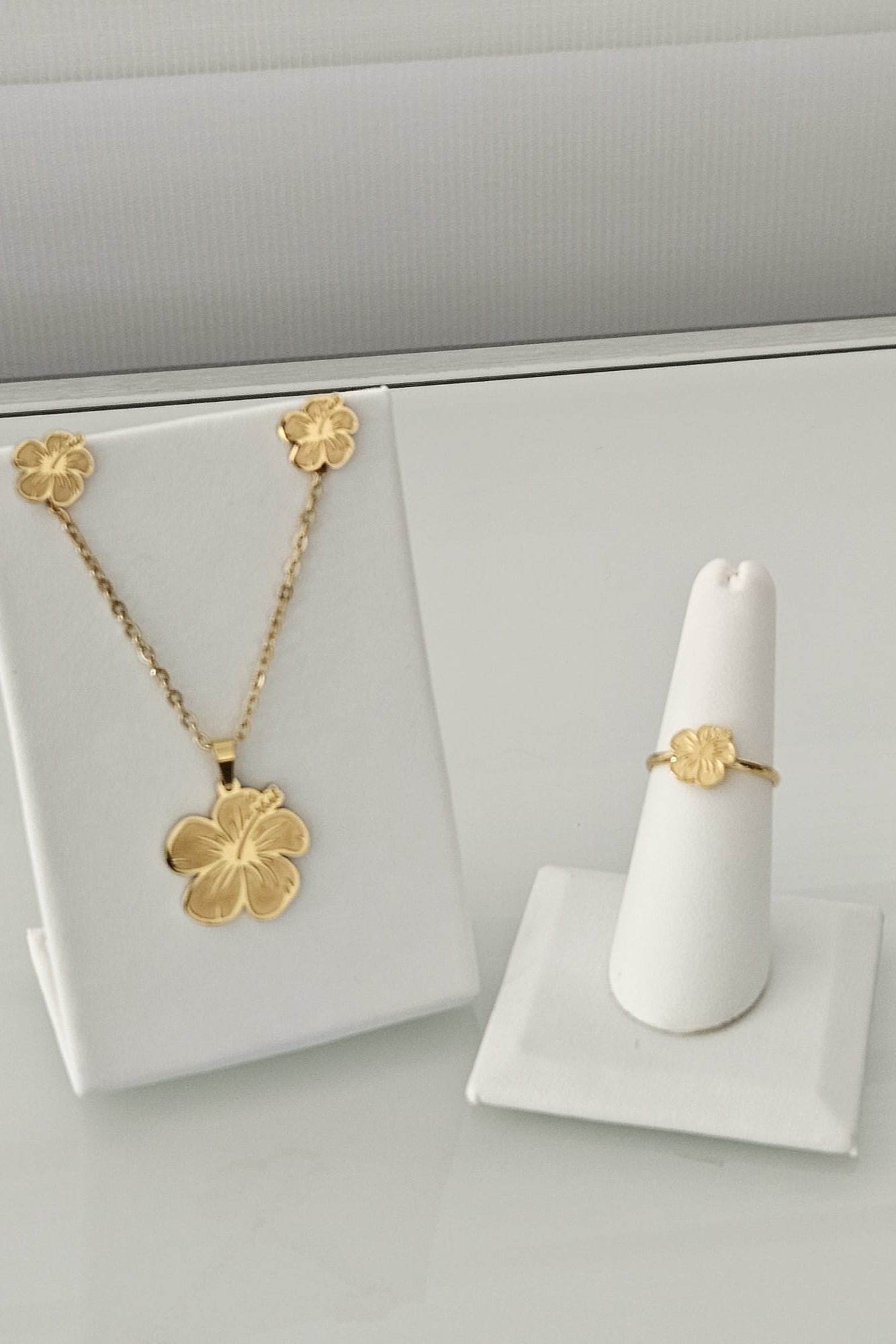 SET DE CADENA, PANTALLA Y SORTIJA DE AMAPOLA DORADA, STAINLESS STEEL.